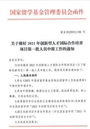 日前,国家留学基金委(China Scholarship Council,CSC)公布了2021年“创新型人才国际合作培养项目”评审结果。