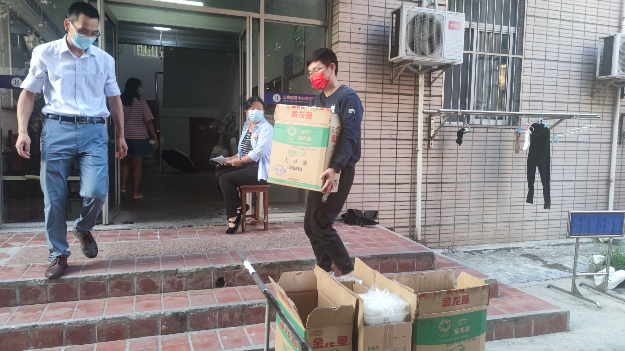 Young teachers Geng Linlin and Ji Leilei were detained in the office due to overtime. They cared for students, overcame difficulties and became involved in voluntary service as party members to deliver meals for students, playing the exemplary role of "one party member, one flag".