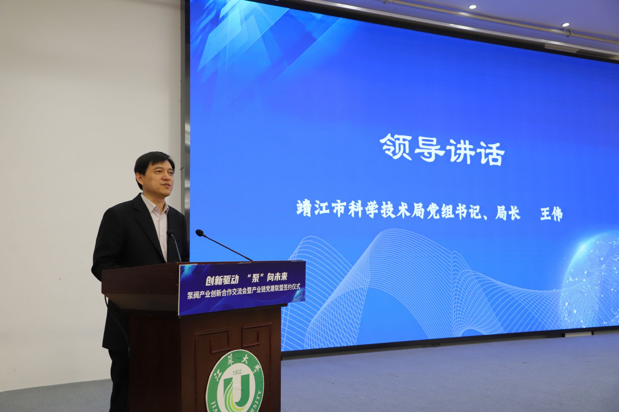 On March 23rd, our university held the "Innovation-Driven, Pumping Towards the Future" Pump and Valve Industry Innovation Cooperation and Party Building Alliance Signing and Exchange Event with Jingjiang Science and Technology Bureau and Jingjiang Pump and Valve Industry Association. Li Hong, member of the Party Committee and Vice President of Jiangsu University, Chen Wei, Deputy Minister of the Party Committee Organization Department, Zhang Yibin, Deputy Director of the University Science and Technology Department, Zhang Desheng, Secretary of the Party Committee of the Fluid Center, Peng Guangjie, Deputy Director of the Center, Wang Wei, Secretary of the Party Group and Director of the Jingjiang Science and Technology Bureau, Pan Cungen, Secretary General of the Taizhou Pump and Valve Industry Technology Innovation Strategic Alliance, and leaders of relevant enterprises in Jingjiang attended the meeting. The meeting was chaired by Yang Liu, Deputy Director of the Jingjiang Science and Technology Bureau.