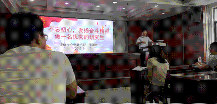 On the afternoon of September 11, Zhang Desheng, Secretary of the Party Committee of the Fluid Center, gave a special report on the thoughts of the 2019 freshmen entitled “Do not forget the initial heart, carry forward the spirit of struggle, be an excellent graduate student”.