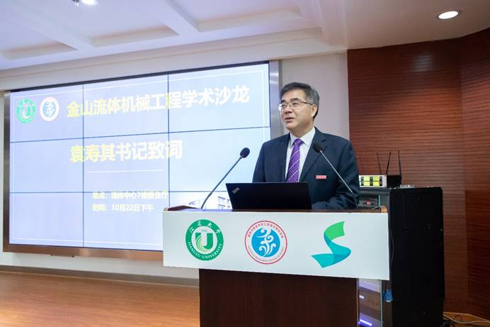 On the afternoon of October 22, on the occasion of 20th anniversary of its founding and 119th anniversary of its running of Jiangsu University, our fluid center held lecture 8-12 of Jinshan Fluid Mechanical Engineering Academic Salon (alumni special session). Prof. Chou Baoyun from Yangzhou University, senior engineer Xie Xiaoqing from Shanghai KSB Co., Ltd, researcher Sun Weiping from 704 Research Institute of China Shipbuilding Industry Corporation, researcher Yang Zhijun from Emergency Management Department of Shanghai Fire Research Institute and Prof. Zhang Bing from Changzhou Institute of Technology were invited as guest speakers to give lectures on academic research, engineering application and personal development from the angle of a student. Secretary of the Party Committee researcher Yuan Shouqi, director of the fluid center researcher Yuan Jianping and nearly 100 alumni and representatives of teachers and students attended this event. The seminar was presided over by researcher Pei Ji, who is the deputy director of the fluid center.