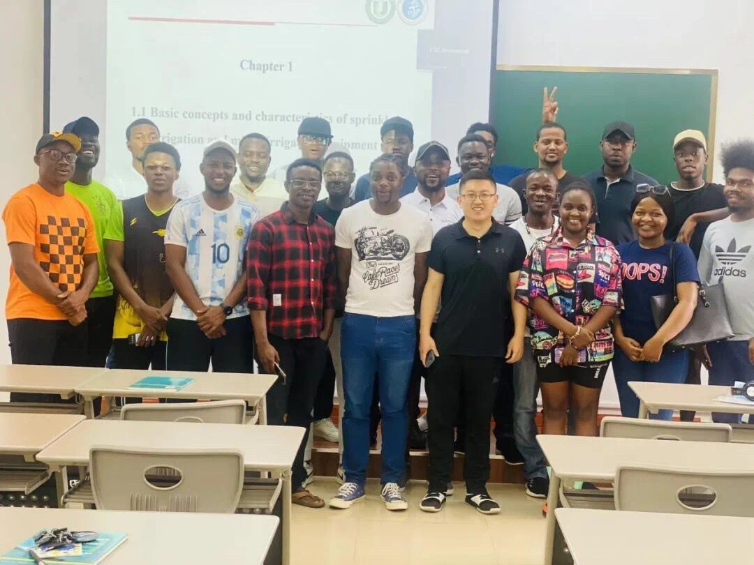 Recently, the International Agricultural Mechanization Training Project authorized by Ministry of Education of the People’s Republic of China and Ministry of Agriculture and Rural Affairs of the People’s Republic of China started class. The class was undertaken by our university, and the expert team including Associate Researcher Jiang Yue and Yan Haofang of our fluid center was responsible for the teaching and practical tasks of agricultural water-saving irrigation module. Although the situation of prevention and control of COVID-19 was still severe, the whole team overcame difficulties and completed the online and offline teaching of two English theoretical courses named Theories and Technology of Sprinkler Irrigation and Micro-Irrigation Equipment and Irrigation Method and Basic Theory. Besides, the team organized trainees to the Sprinkler Irrigation Experiment Hall, Observation Site of Farmland Micrometeorology Test and Intelligent Greenhouse Planting Laboratory, where operating methods of different irrigation systems were explained to the participants according to the actual objects. The explanation combining theory with practice ensured that the trainees fully understood the teaching content. Meanwhile, the teaching team also organized trainees to visit leading enterprises in this industry including but not limited to Jiangsu Huayuan Irrigation and Drainage Co. Ltd. and Jiangsu Wangda Sprinkler Irrigation Machine Co. Ltd. The training was a complete success and was highly praised by African trainees.