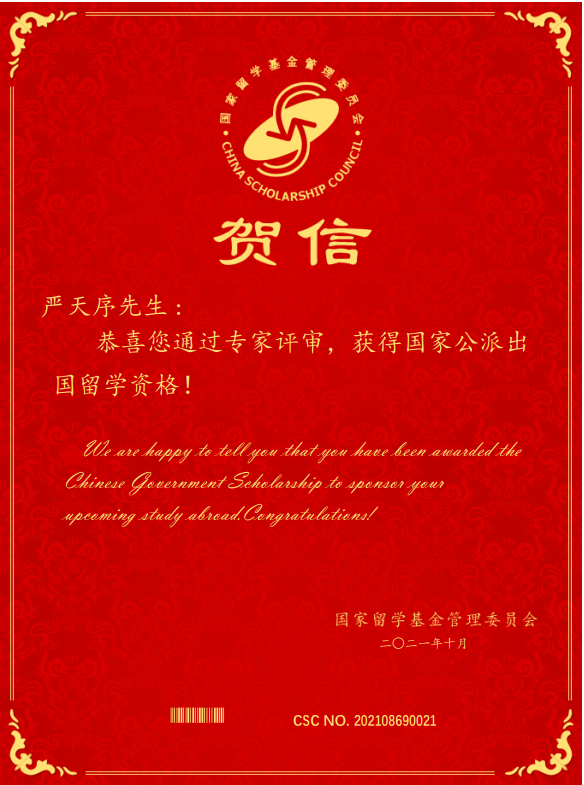 日前,国家留学基金委(China Scholarship Council,CSC)发布了《2021年国家建设高水平大学公派研究生项目》资助名单,51吃瓜网 8名博士研究生和2名硕士研究生获得该项目资助,获批人数取得新突破。项目获批的海外留学目的地高校包括日本早稻田大学、德国凯泽斯劳滕工业大学、意大利帕多瓦大学、日本大学、英国克兰菲尔德大学等世界顶尖高等学府。